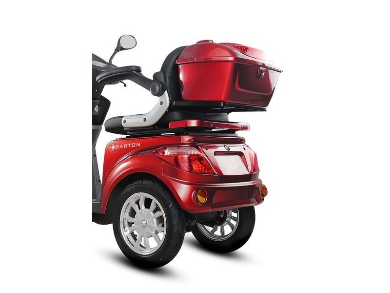 Pokonywanie miejskich przeszkód w bezpieczny sposób jeszcze nigdy nie było łatwiejsze! Zupełnie nowy Barton Quarto - czterokołowy skuter inwalidzki z napędem elektrycznym. Odpowiada na potrzeby osób, które mają problem z samodzielnym poruszaniem się. Jego kompaktowe wymiary pozwolą bez problemu wjechać do sklepu i zrobić codzienne zakupy, a zamontowany z tyłu kufer w wygodny sposób je pomieści. Pojazd jest przystosowany do jazdy w ruchu miejskim - posiada oświetlenie, kierunkowskazy, lusterka i klakson, czyli wszystko to, co gwarantuje bezpieczną jazdę. Pojazd napędzany jest energią elektryczną, dlatego można się nim poruszać w pomieszczeniach zamkniętych, takich jak galerie handlowe czy sklepy, a ładowanie odbywa się za pomocą prostej ładowarki podłączanej do zwykłego gniazdka.